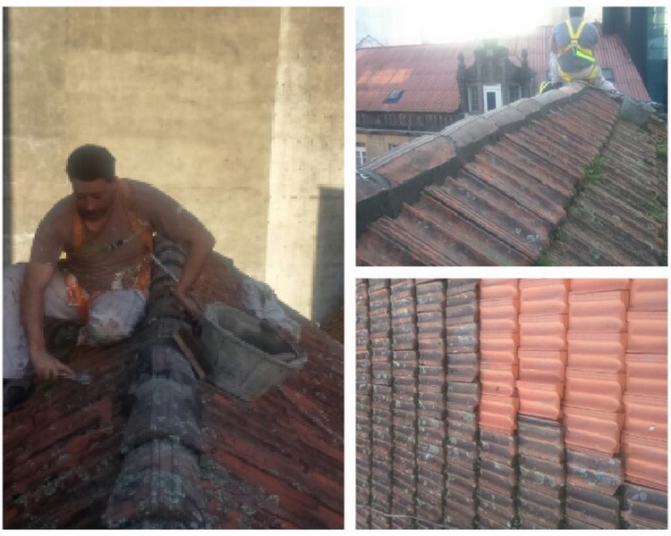 Limpieza y pintado de tejados. Posibilidad de acabado transparente, aplicando líquido hidrófugo o en color aplicando pintura caucho, (pistola airless).